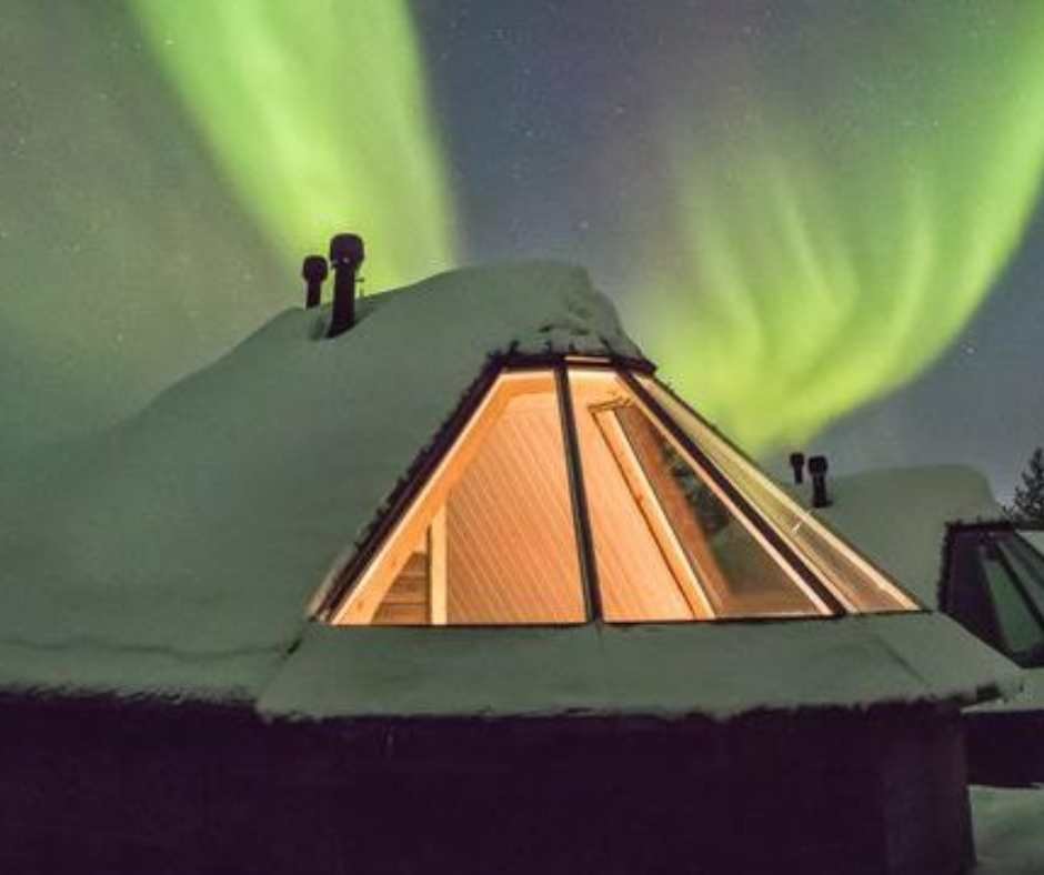 Aurora Cabins at Northern Lights Village Saariselkä offer a private retreat designed for viewing the Northern Lights right from your bed.