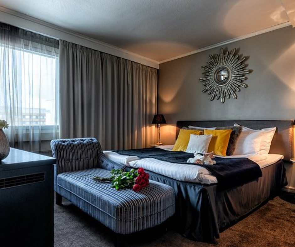 • Spacious 40 m² / 430 ft² Junior Suite of Arctic City Hotel Rovaniemi with modern Arctic-inspired décor.