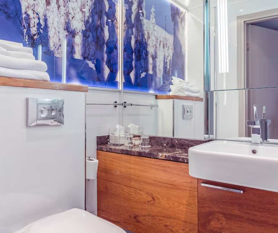 • Large windows with city or Arctic landscape views.